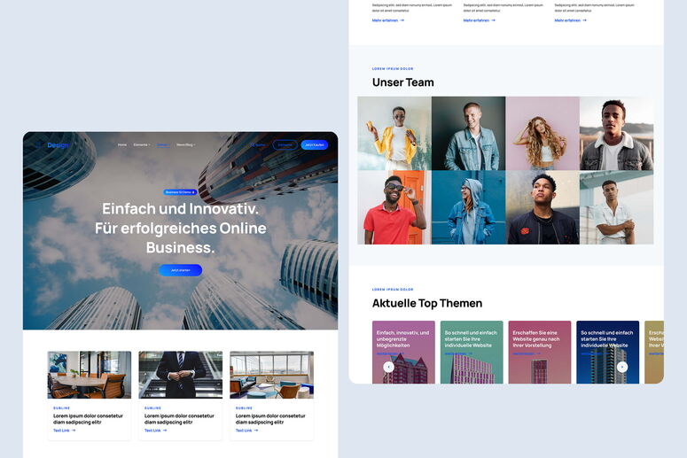 In wenigen Klicks eine von vielen sorgfältig ausgearbeiteten Demos importieren und als Kickstart für die eigene Website nutzen. Mit Contao Design+ lassen sich Templates einfach neu anordnen, visuell anpassen, und mit eigenen Inhalten zum Leben erwecken.